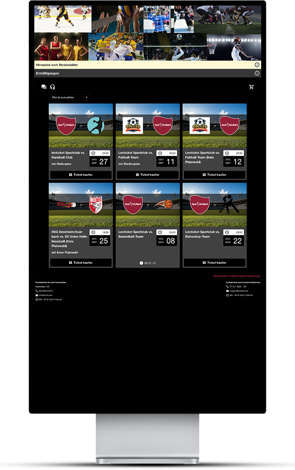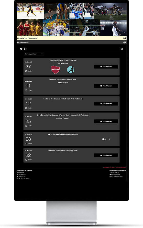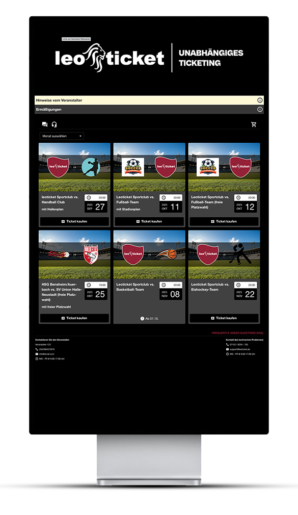 Diese Demo-Webseite zeigt exemplarisch, wie der Ticketshop und die Spielplanübersicht von leoticket an Ihre Vereinswebseite angepasst werden können.